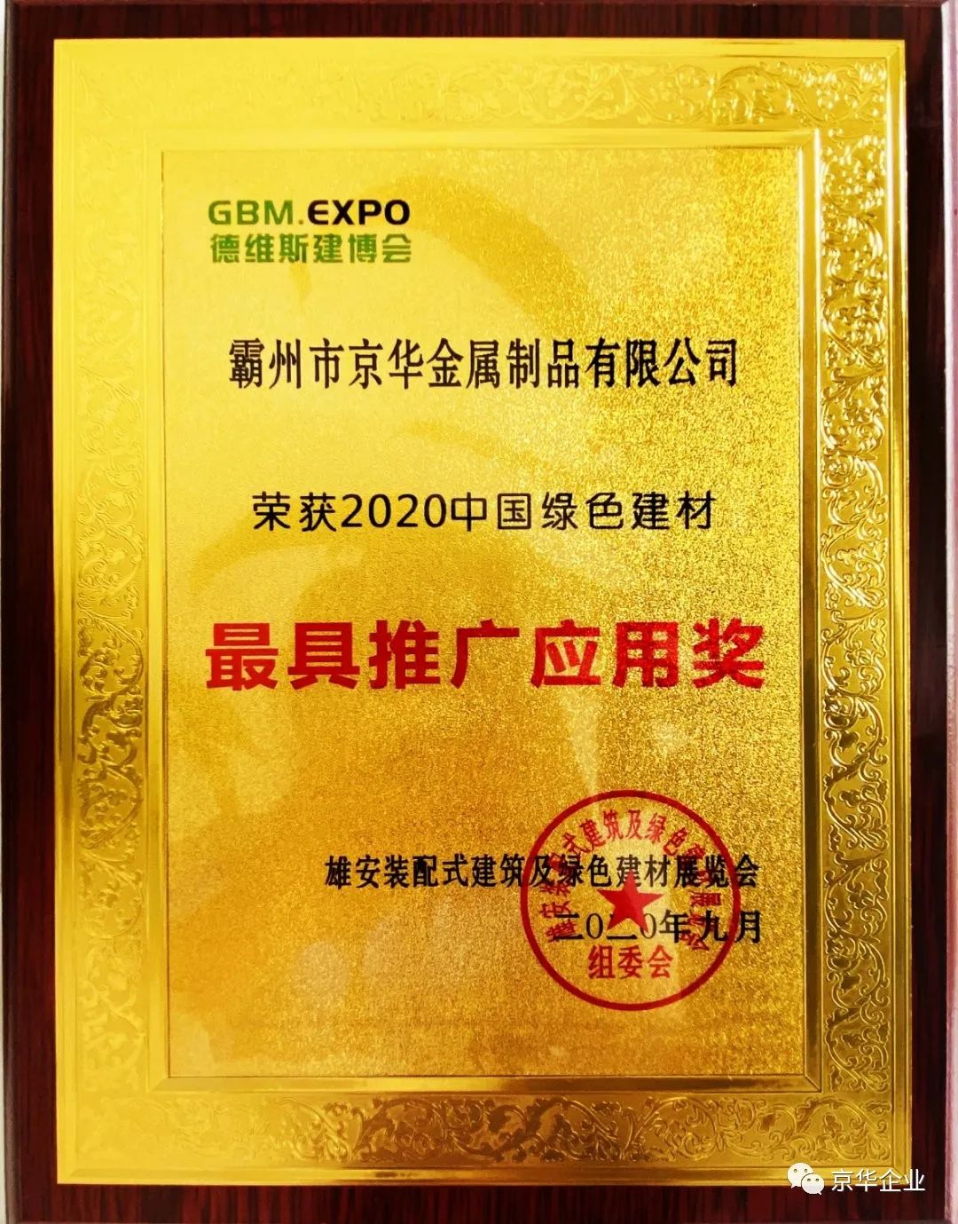 雄安德維斯建博會作為雄安新區(qū)的標桿性展會,會上,京華企業(yè)以卓越的產(chǎn)品質(zhì)量和先進的生產(chǎn)技術(shù)以及標準化的銷售服務(wù)榮獲2020中國綠色建材“最具推廣應(yīng)用獎”。