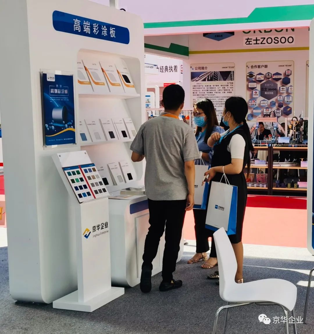 其中,產(chǎn)品展示區(qū)—京華企業(yè)旗下產(chǎn)品的京華彩涂板、京華精品彩涂板、京華高端彩涂板、熱鍍鋅板、高強鋼板等板材,憑借自身輕質(zhì)、美觀、防腐、抗菌、環(huán)保等優(yōu)質(zhì)屬性吸引了眾多參展者的駐足觀看和青睞。企業(yè)旗下的5大板材可廣泛應(yīng)用于基礎(chǔ)設(shè)施建設(shè)、交通工程、商業(yè)地產(chǎn)、工業(yè)建筑等領(lǐng)域,為大美雄安的建設(shè)保駕護航。