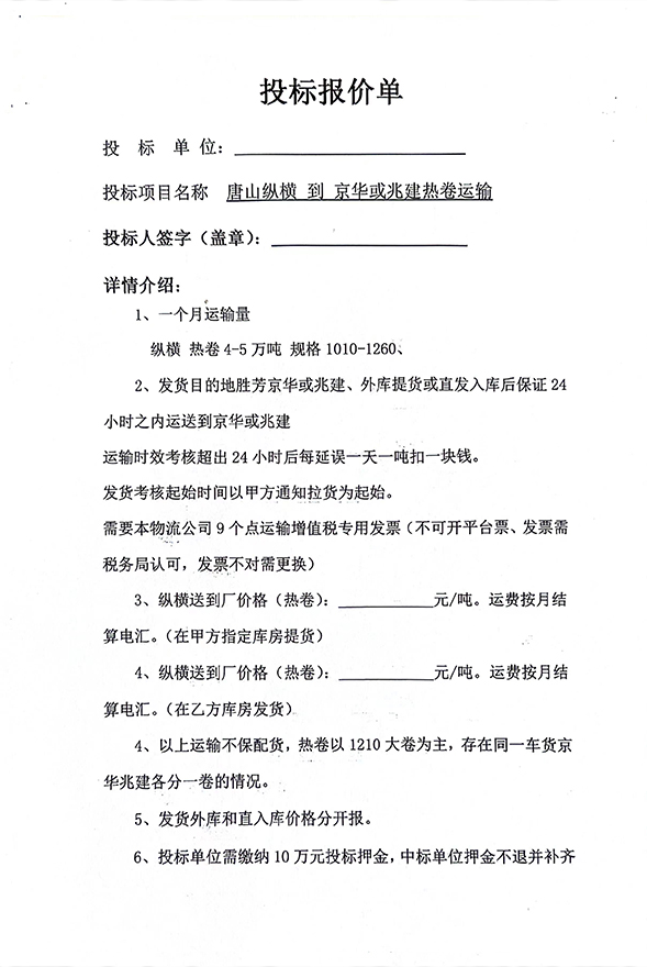 投標(biāo)報(bào)價(jià)單