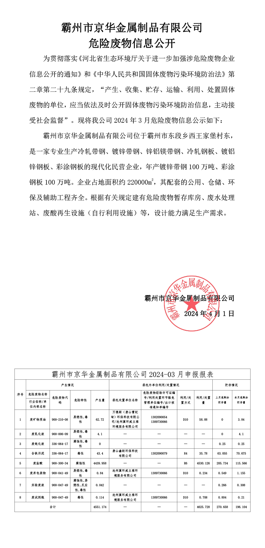 下一篇:24年4月危險(xiǎn)廢物信息公開-霸州市京華金屬制品有限公司