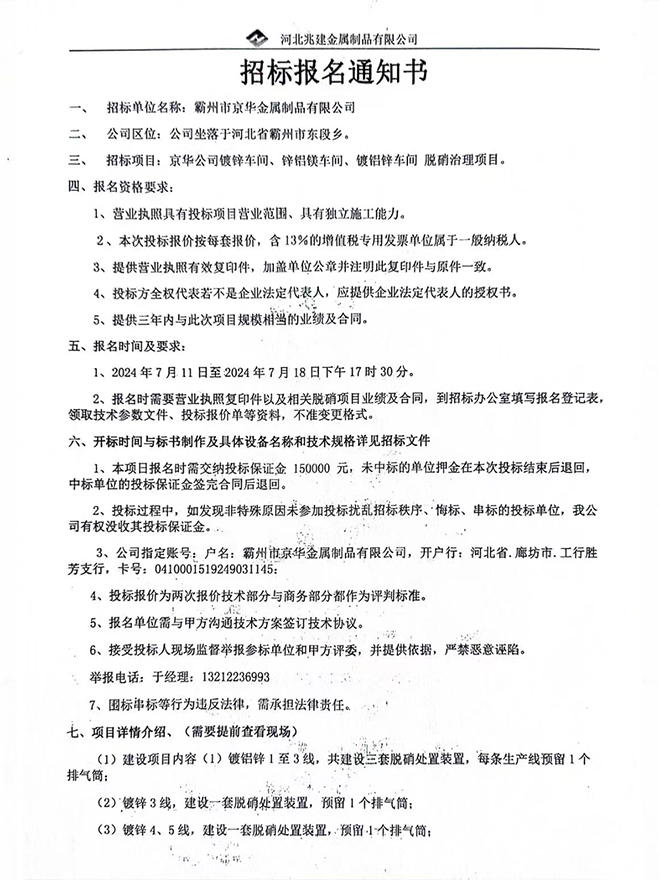 - 招標(biāo)業(yè)主: 河北兆建金屬制品有限公司