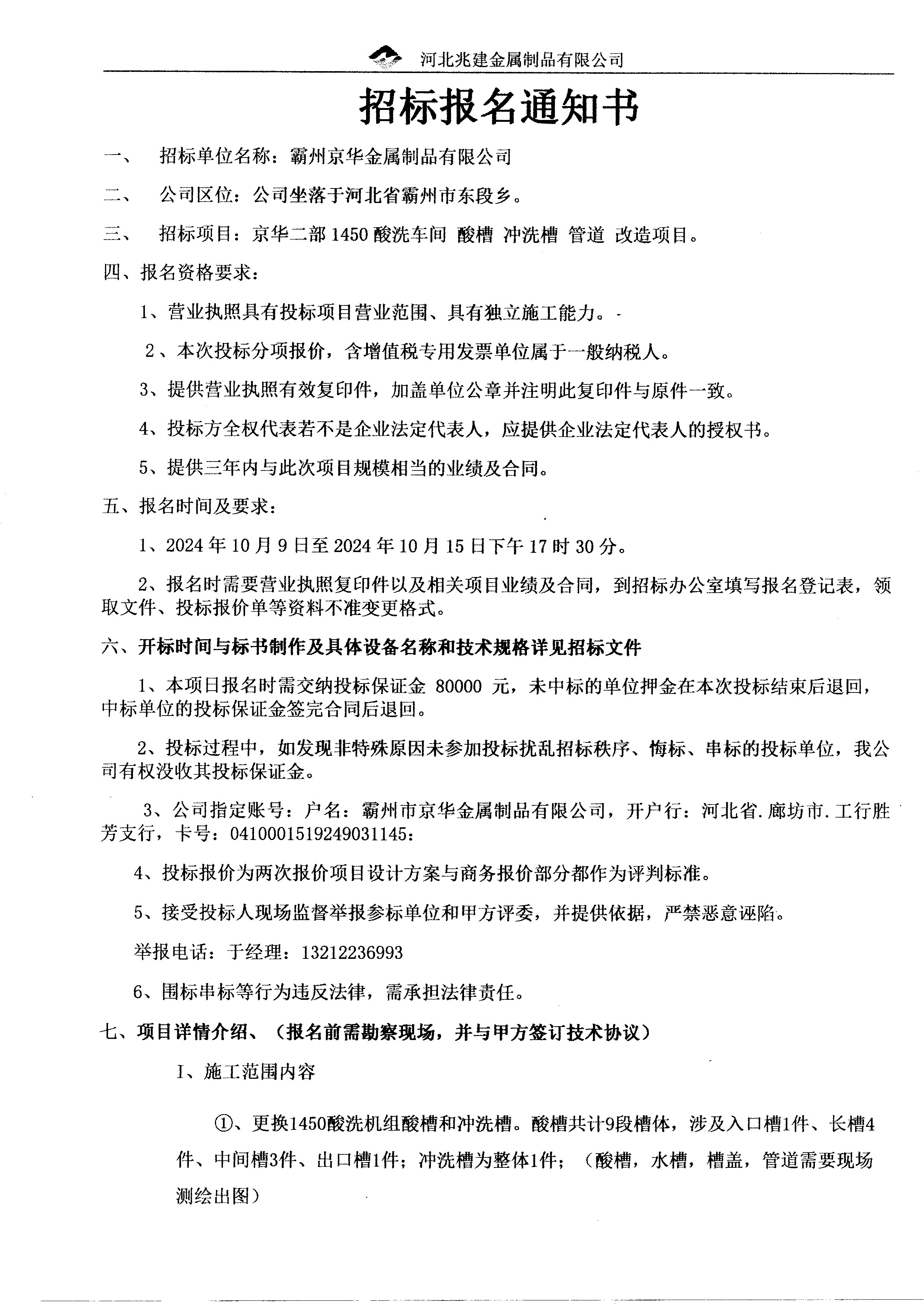 - 招標(biāo)業(yè)主: 河北兆建金屬制品有限公司